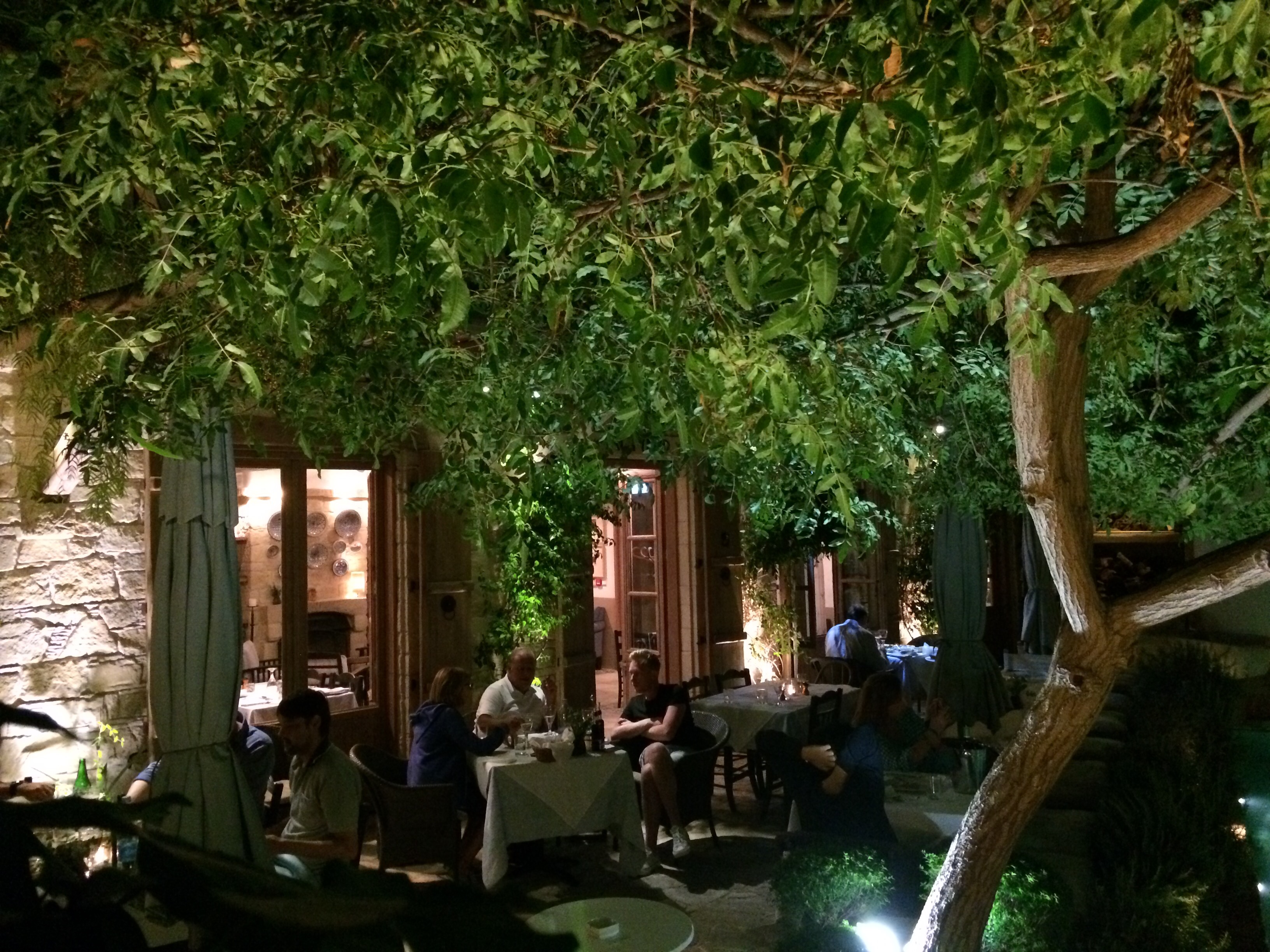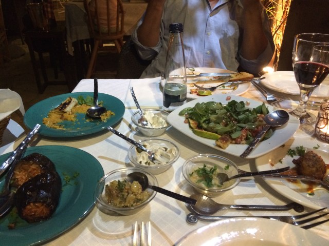 There was no menu to choose from, only a selection of the day that they would prepare in the kitchen and bring it out to your table, on the terrace facing the pool. Most of the guests went for this option and after a couple of nights we understood why. Great vegetable base options but also meat, all in plentiful supply. I must have gained 1 kg just at Apokryfo. You have a menu with selected local wines to choose from. Without being wine experts, all the recommendations made by the hosts were spot on. The combination of great food and nice wine plus the outstanding atmosphere and deco often lead to guests starting to chat with each other, sharing travel stories and dinners going well beyond 11PM.