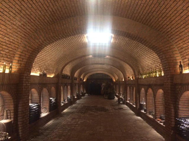 We stopped for lunch at Khareba Winery restaurant and visited their cellars afterwards. This is huge place, definitely geared towards tourist groups but still interesting as they have 17 kilometres of underground tunnels for storing the wine. They are well known for the Saperavi wine which is produced according to the European method (aged in wood barrels). They also have vrey nice grape seed oil that would make a beautiful present once you are back.