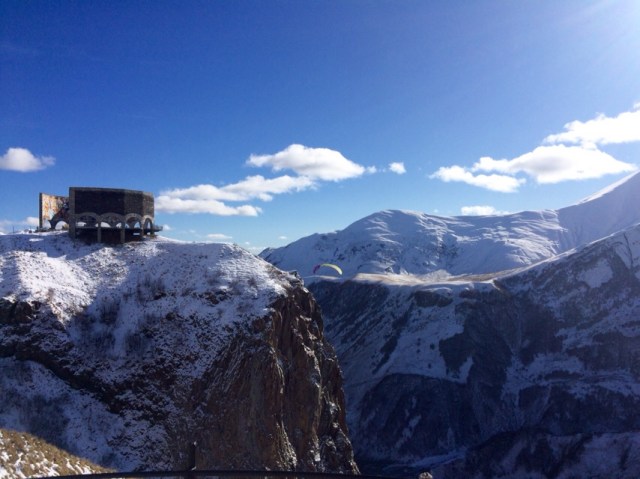 Next stop was the famous Georgian ski resort of Gudauri, located at 2000m. There was already snow in November and the ski slopes looked open. Our guide mentioned it is very popular for heli- skiing. The main reason to stop here (outside skiing) is to take a few snaps of the Georgia-Russia friendship monument and admire the snow capped mountains.
