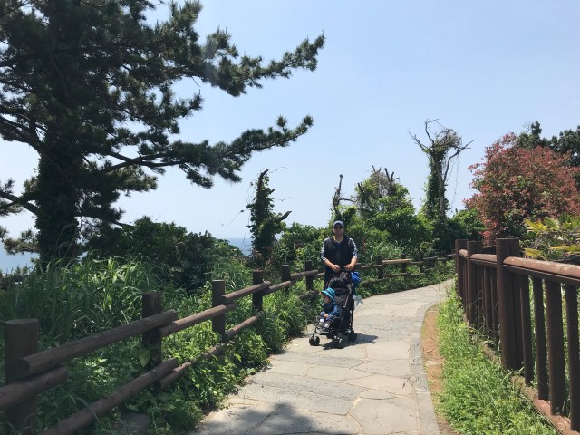 The Olle Track is a interconnecting network of walking and hiking routes that circles the island. There are shorter routes of about 5 km but also a few of about 20 km in length. They also have varying degrees of difficulty and may cross fields, cities, go up the mountain and give access to many of the Jeju do sites. We went to the helpful Olle info Center in Seogwipo and asked about the most accessible routes with a stroller. Large parts of track No 6 and a very scenic section of track no 7 fit this requirement.