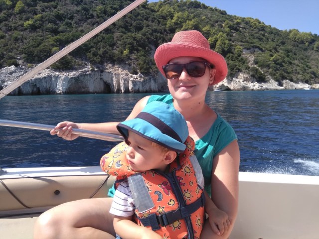3. Maybe our favourite activity on Zakynthos was chartering a boat and spending a few hours at sea and on Turtle island. We rented via Big Blue, a company offering several individual as well as group tours from Keri Beach. The cost of a 3 hours trip with skipper was 200 Euro. This included a pick up and drop off by car from and to our accommodation in Vasilikos. They also provided a swim vest for the toddler. Please call at least a day before if you want to charter a boat