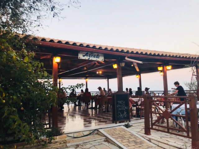 Onto the restaurants, we tried quite a number of them but really enjoyed about 4. One I already mentioned above, the Botanic Garden in Tsilivili. There were 2 in Vasilikos that also deserve a shout out: Mesala and Babis Taverna. We ate there a few times and food was consistently fresh and tasty. Babis’ place had a nicer atmosphere, in an interior garden and away from the street. They all had high chairs and a children menu. The tavern we liked the most was Agnadi on Vasilikos road. It tops our list for their great food but also super nice attitude towards the toddler: offering not only a high chair but also plastic cutlery and cup as well as a ‘natural’ final treat after each meal. The view from their terrace was just the cherry in the cake. The perfect place for our final dinner on the island.