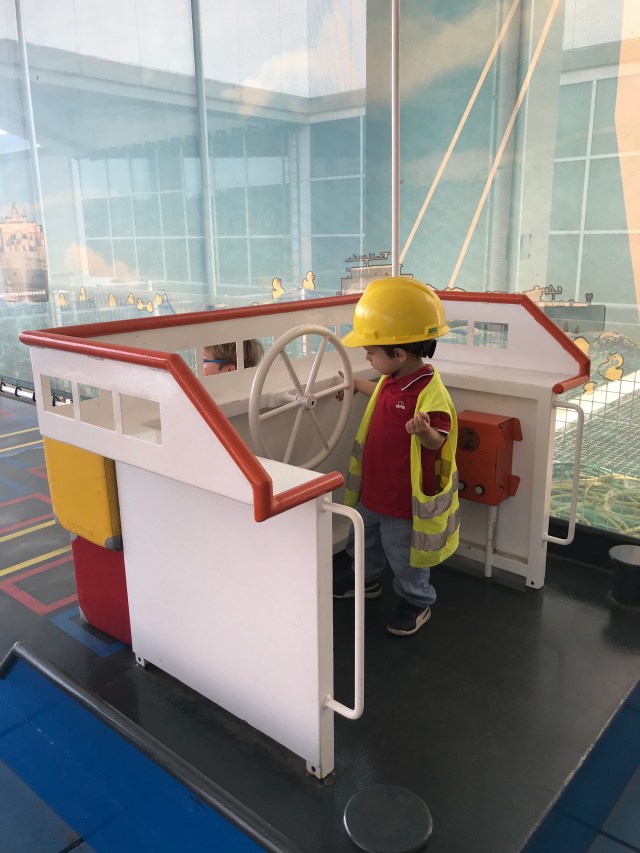 A bit further away on the right side of the building is the Play area called Professor Splash. Here you have a huge ship where kids can role play as seamen, steer the boat, cook food and catch fish. Finally, there is a great outside play area where they can ride more boats, operate a harbour crane and even tag and load toy containers on ships. As they play, they learn all sorts of things about various types of ships, working in the port, navigation and how products such as their own toys are transported by ship from all over the world.