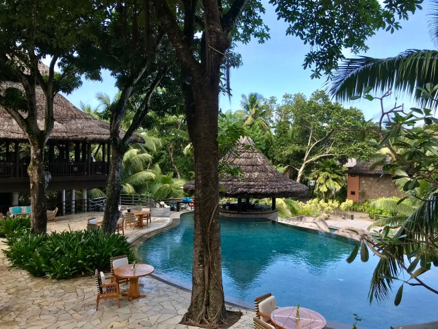 This was our second resort stay on this trip and it had a very different atmosphere than Lemuria. The accomodation was in villas scattered through the forest, that blended amazingly well with the surroundings. I loved the SPA view, it was located on the highest point of the hill, with a open air panorama stretching all the way to the beach. It was a very romantic place for a few days but the island is very small and we did get itchy feet after a few nights.