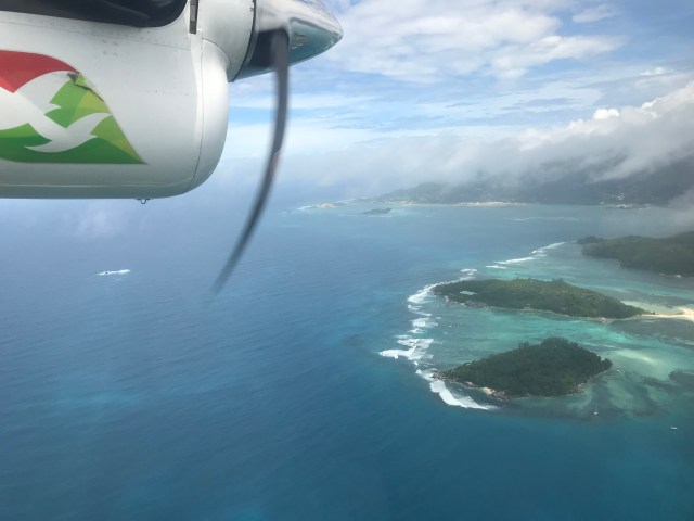 In order to reach Praslin after arriving in the international flight, you just need to walk the 100m from the international arrivals to the domestic terminal and catch one of the hourly internal Air Seychelles flights. Tickets can be bought on their website in advance and average at 100 Euro per person return. It is the fastest and most effective way to reach Praslin as the flight only takes 15 min. It is also a very panoramic flight above the inner Seychelles islands and atolls.