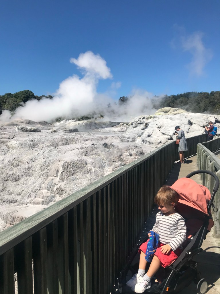 Day 7: Rotorua You can enjoy more Geothermal activity at Waimangu Park. It came highly recommend by a couple of families we met on the road. Unfortunately the weather was not on our side for an outdoor activity on this day so we decided to take a detour and visit the Waitomo Glowworm caves. We really enjoyed our tour and can recommend it also with little ones. It is 2h from Rotorua and about the same from Auckland. In the evening, we drove to Taupo Top 10 Holiday Park for another 2 h. In the evening we had a walk in Taupō town and dinner at the South American Kitchen bistro. They have high chairs and colouring crayons for little ones.