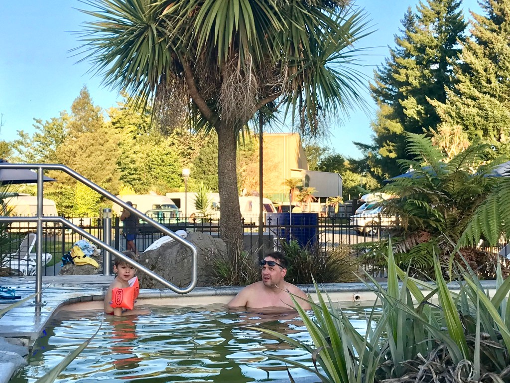 Day 2 : We drove about 3 h to Hot water beach 🏖 where we would spend 3 nights to acclimate to the time. We had a cabin at a rather old but good quality Top 10 Holiday Park. There are many scattered around NZ and it pays to get their card as it gives you a 10 % reduction in accommodation. We also booked the first 2-3 accommodations of our itinerary in Top 10 cabins about one month in advance as they are very popular in the New Zealand Summer holidays.