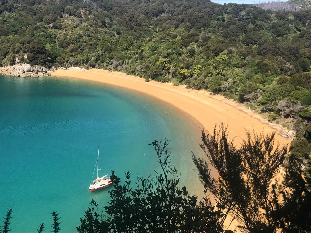 Day 15: Motueka day 2: Boat and walk in Abel Tasman NP: different tours can be arranged from Motueka or Nelson township. You can do it independently of course but we preferred to have a company that is reliable with small children and free time in the park to explore at leisure. There are many day trips, including walks and hikes of different duration can be booked at the tourist office the day before.